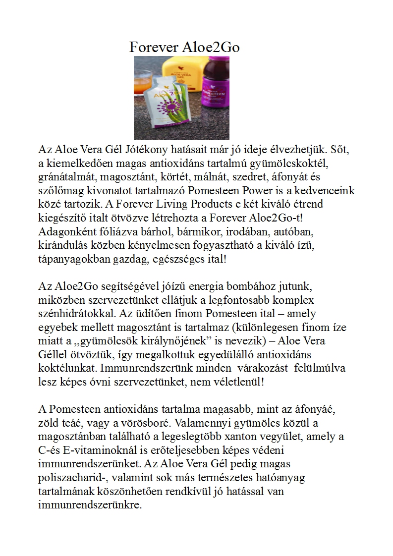 Az Aloe Vera gél és a Pomesteen Power egyesítéséből jött létre.Kiemelkedően magas antioxidáns tartalmú.Immunrendszer erősítő ital.