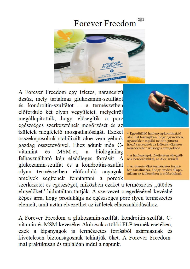 A Forever Freedomban az Aloe Vera olyan anyagokkal van kombinációban jelen,amelyek segítenek a megfelelő ízületi funkciók és mozgékonyság fenntartásában.